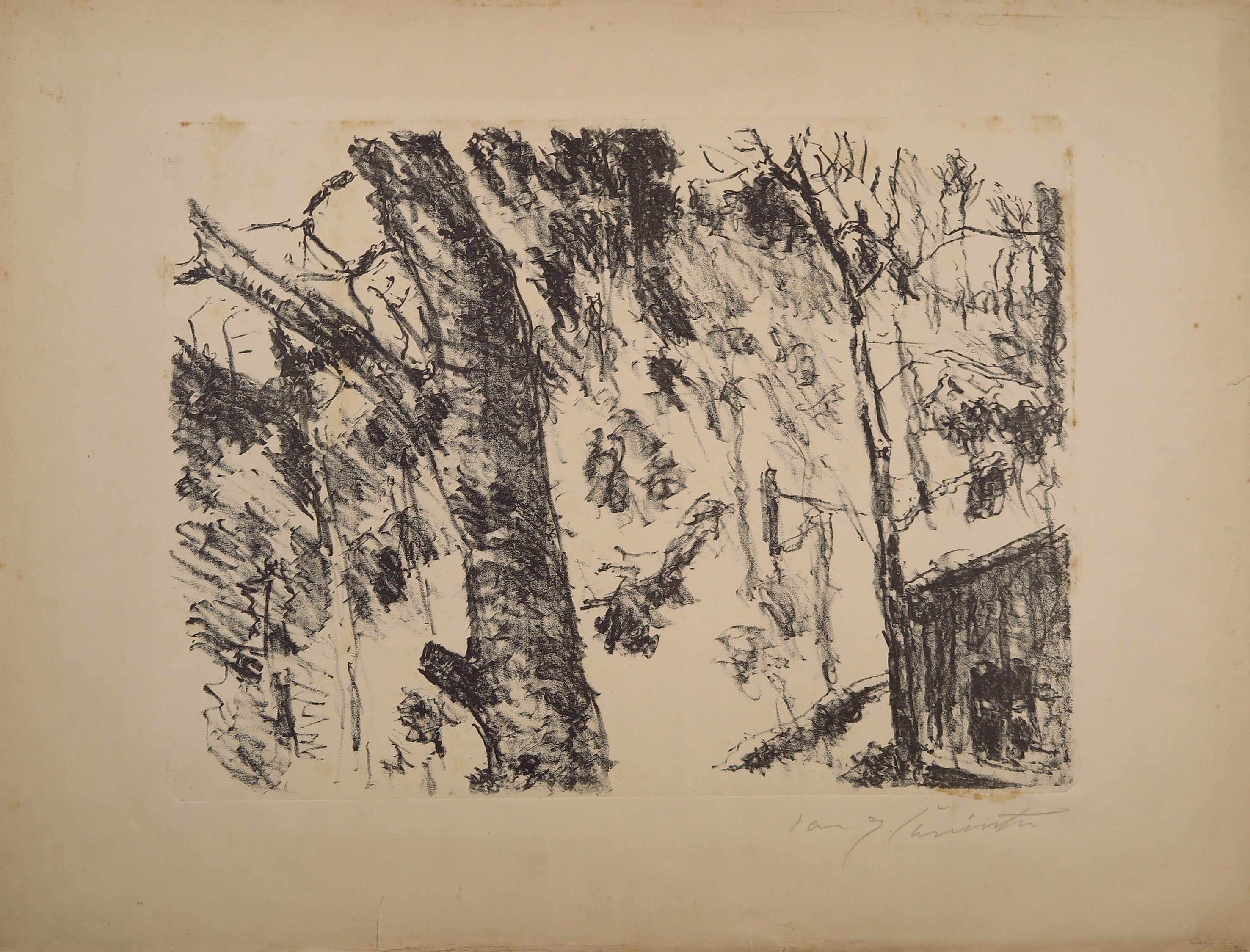 Künstler Prof Lovis Corinth (1858-1925): Bäume Menschen vor kleinem Haus