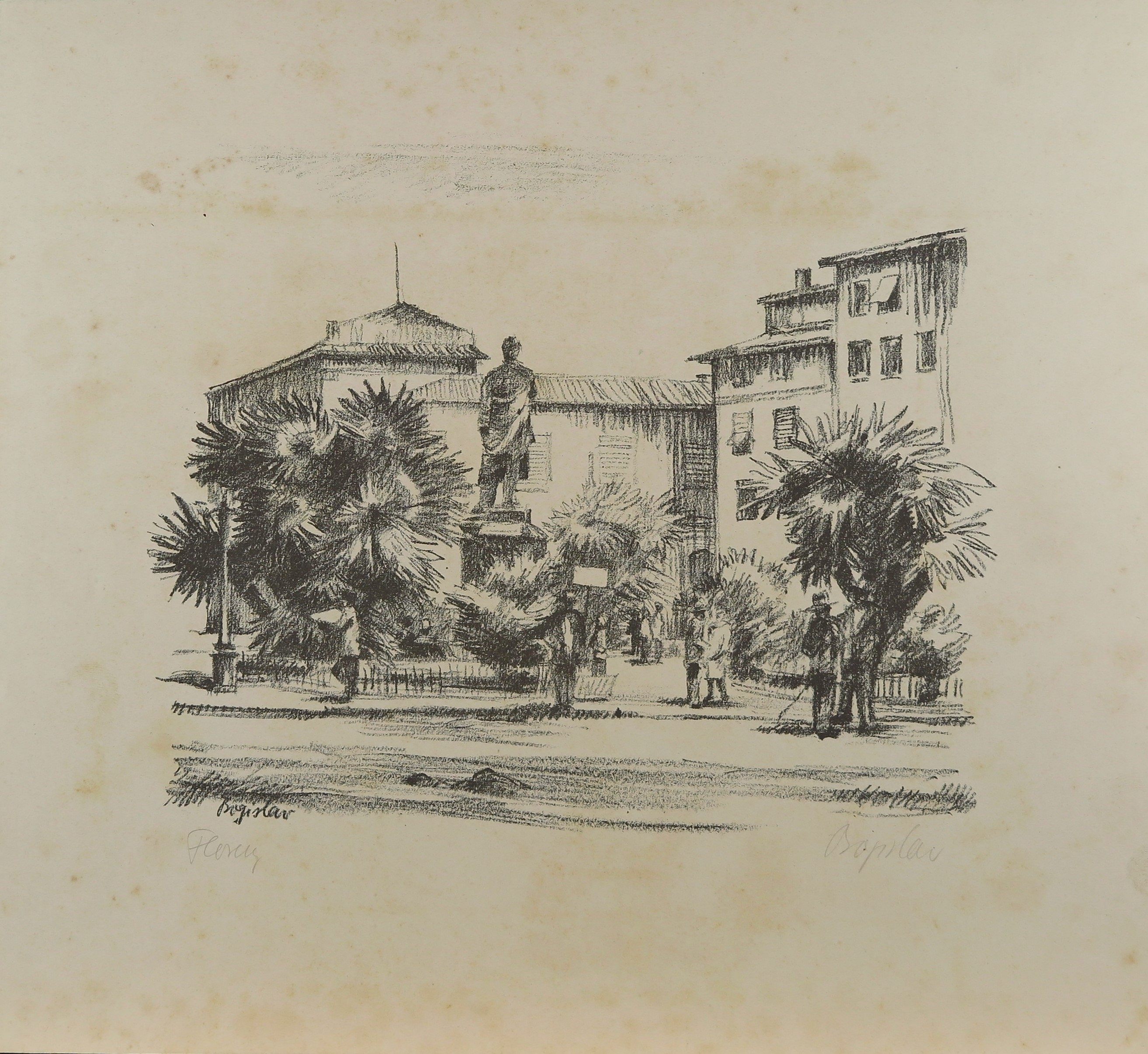 Künstler Bogislav: Ansicht von Florenz mit Statue