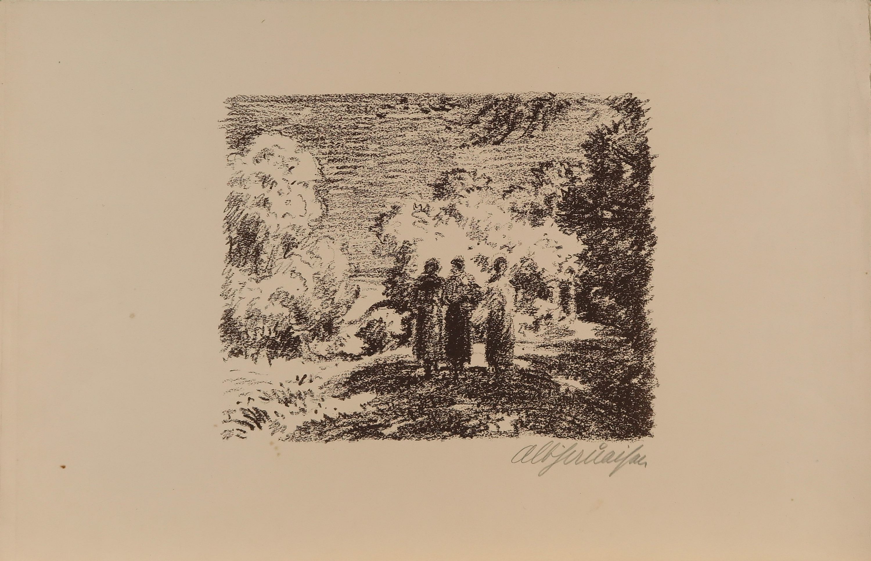 Künstler Prof Albert Haueisen (1872-1954):drei Personen vor Bäumen